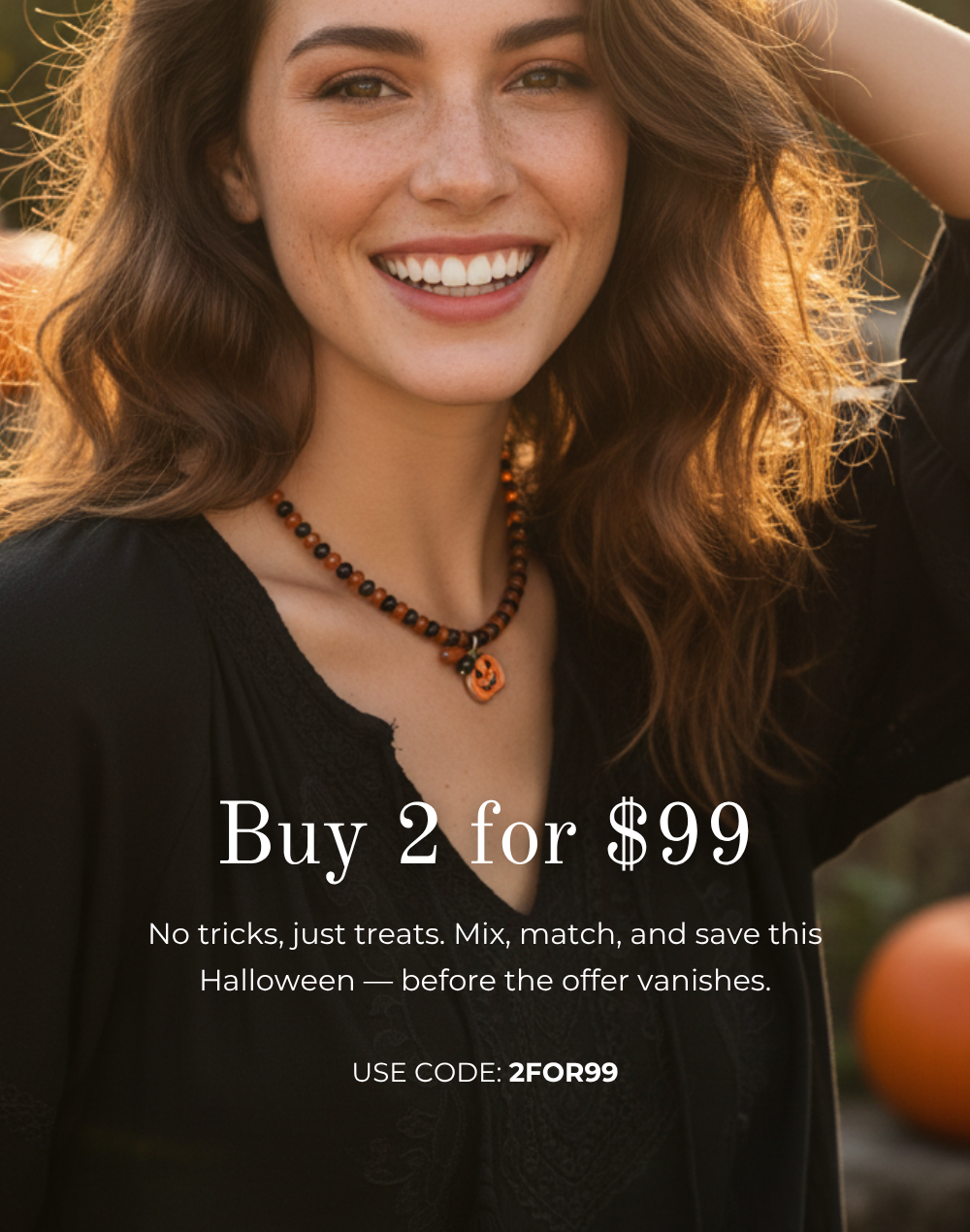 このハロウィン、魔法のチャームであなたのスタイルを召喚しましょう。各アイテムには魔法のひとさじが込められており、期間限定で2つで99ドルの特別価格で魅惑的なコレクションを作れます。✨🖤