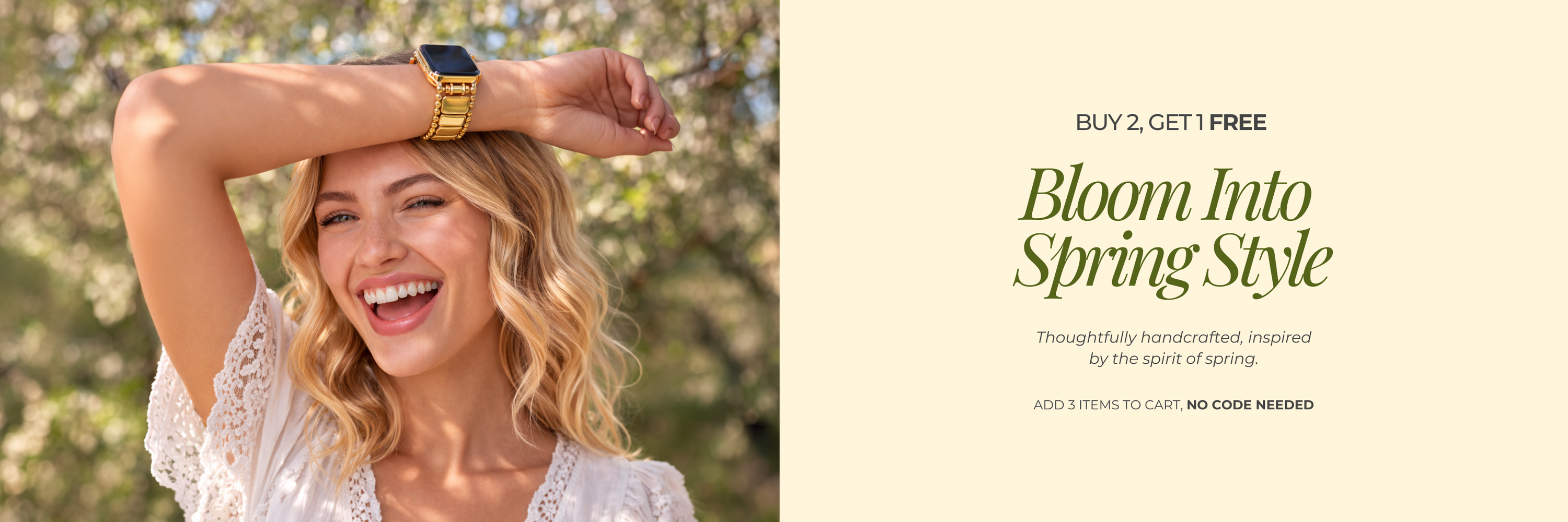 新たな季節の訪れを手首に新鮮なエネルギーとともに祝福しましょう。私たちの最新のゴールドノワールストレッチApple Watchストラップは、自然の目覚めにインスパイアされており、成長、美しさ、新しい始まりを象徴しています。
